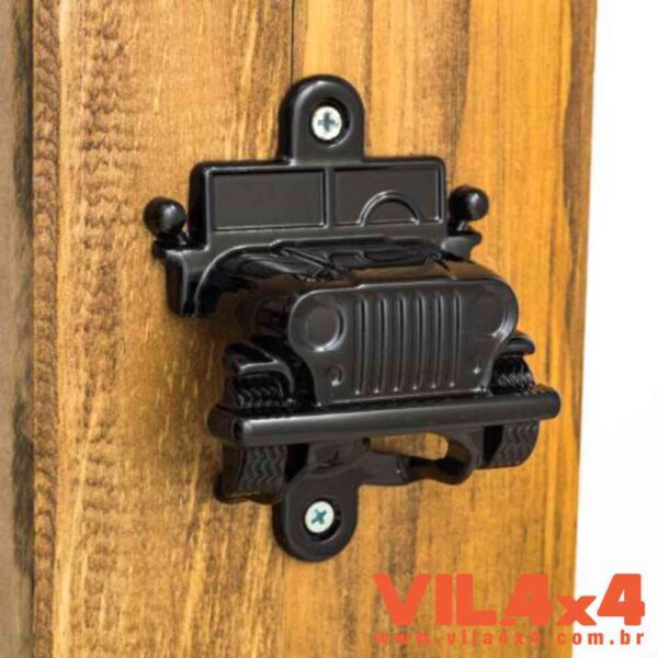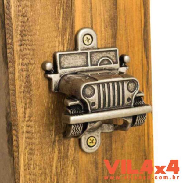 ABRIDOR DE GARRAFA NO FORMATO DE JEEP PARA FIXAÇÃO EM JIPE, PAREDE, ETC…